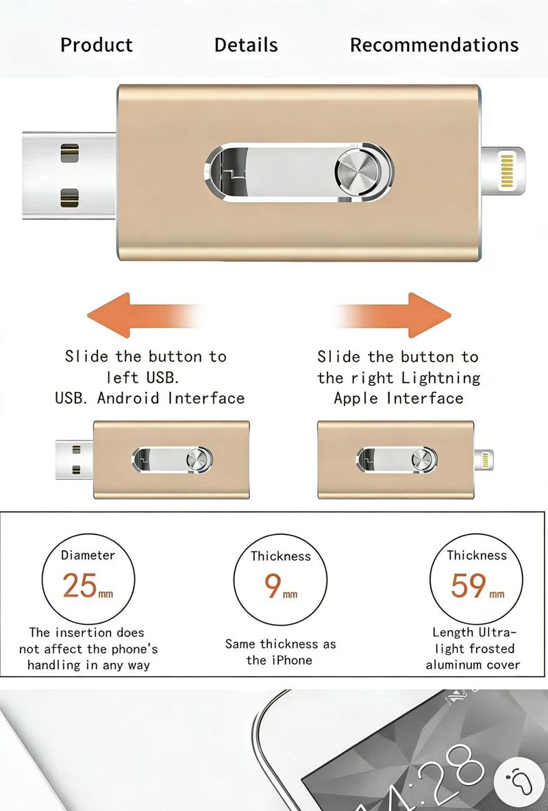 2TB Large capacity 3 in 1 USB (Send the adapter)